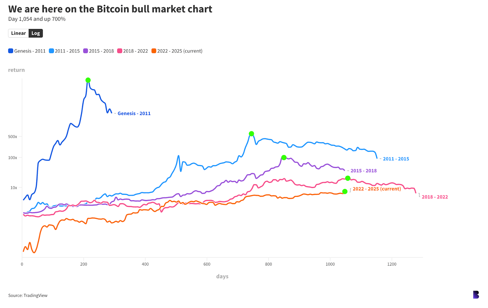Cycles start at the beginning of a bull market. Our current bull market kicked off in November 2022, which means the bottom of the bear market should occur at the end of next year.